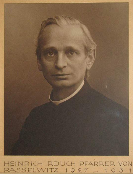 Kilka tygodni temu zwróciła się do mnie osoba, znana mi już wcześniej z poszukiwań genealogicznych, z zapytaniem o informacje na temat ks. Heinricha Rducha, który w latach 1927-1931 był proboszczem parafii Racławiczki. Okazało się, iż Urząd Miasta Zabrze publikuje książkę na temat dzielnic tego miasta i w jednej z tamtejszych dzielnic – mianowicie Makoszowy – ks. Rduch był również proboszczem i poszukiwane są fotografie z jego podobizną.