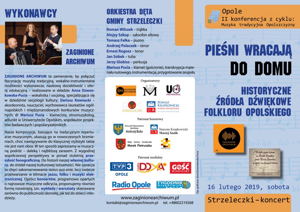 W imieniu organizatorów, wszystkich zainteresowanych zapraszam do Strzeleczek, gdzie już w najbliższą sobotę – 16 lutego – odbędzie się koncert pt. „Pieśni wracają do domu”.