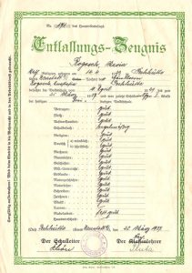 W skład znaleziska wchodzą: świadectwo ukończenia pierwszych dwóch klas szkoły (Abgangs-Zeugnis) z 23.03.1932 r.,świadectwo ukończenia szkoły (Entlassungs-Zeugnis) z 25.03.1937 r. oraz zeszyt z wpisami dotyczącymi ukończenia poszczególnych lat nauki (Zeugnisheft).