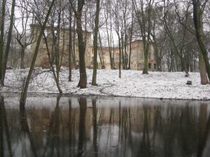 - „Lustrzane odbicie” – ruiny średniowiecznego zamku w Chrzelicach wraz z fragmentem fosy (gm. Biała). Na zdjęciu widok zamku od strony południowej.